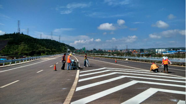 道路交通標(biāo)線是以規(guī)定的線條、箭頭、文字等導(dǎo)向裝置劃于路面或其他設(shè)施上,管制引導(dǎo)交通和分散交通流的設(shè)施。道路標(biāo)線分為:熱熔標(biāo)線,常溫